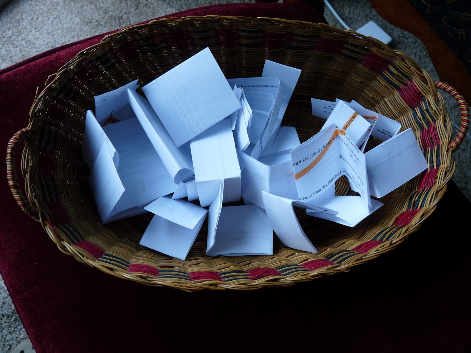 Look what I found! It's a small basket, but it's stuffed with 1 3/4" unfinished HSTs! These are left-overs from my GS's high school graduation quilt that I made last year. I think I'll make a doll quilt out of them. I found some other missing items as well and had to shake out the dust cloth many times. Once in a while, it feels good to clean and organize.